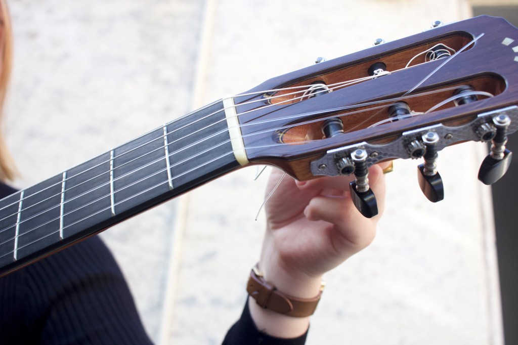 I began playing guitar when I was 9 years old. I brought my older cousin’s hand-me-down, half-size acoustic guitar to my lessons at school. Besides the soreness of old rusty strings on my finger tips, I immediately fell in love with playing the guitar, and began irritating my parents with repetitive scale practising every night. 15 years later, I am lucky enough to own a few of my own (much nicer) guitars, and I am still irritating my family, friends, partner and dog, learning new things each day on my guitar.